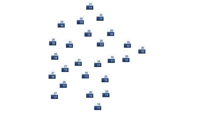 | 11 | 11 | 13 | 15 | 18 | 21 | 23 | 24 | 23 | 21 | 17 | 12 |