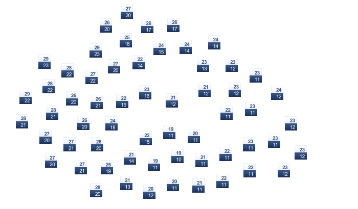 | 19 | 20 | 24 | 29 | 34 | 37 | 39 | 39 | 37 | 33 | 27 | 20 |