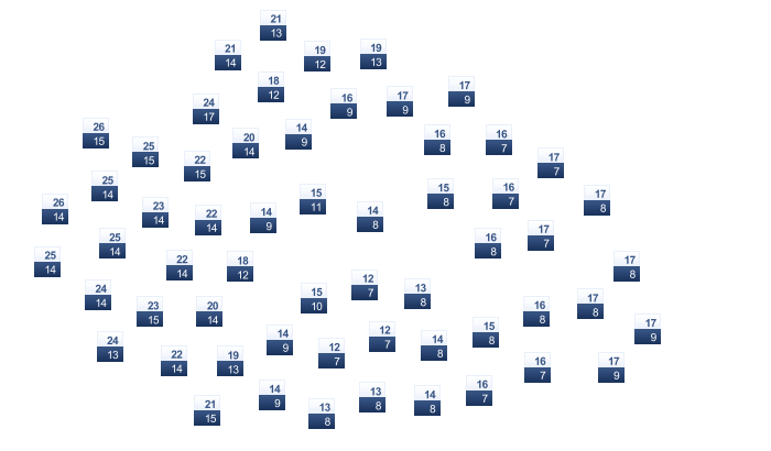 | 11 | 11 | 13 | 15 | 18 | 21 | 23 | 24 | 23 | 21 | 17 | 12 |