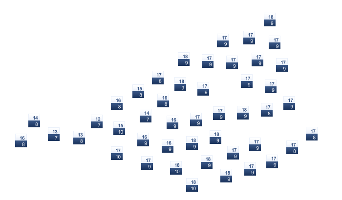 | 19 | 20 | 24 | 29 | 34 | 37 | 39 | 39 | 37 | 33 | 27 | 20 |