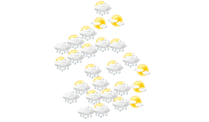 In Samlout fällt von morgens bis zum Nachmittag Regen und die Temperaturen liegen zwischen 22 und 29°C. Abends ist es in Samlout bewölkt bei Werten von 23 bis zu 24°C. Nachts ziehen Wolkenfelder durch bei Tiefsttemperaturen von 22°C.