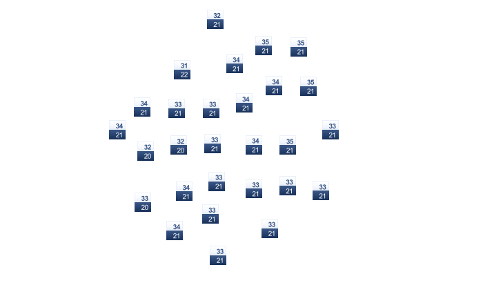| 31 | 32 | 34 | 35 | 34 | 33 | 32 | 32 | 31 | 30 | 30 | 30 |