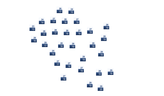 | 21 | 22 | 23 | 24 | 24 | 24 | 24 | 25 | 25 | 24 | 23 | 22 |