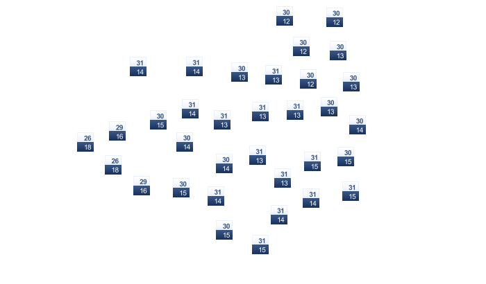 | 31 | 32 | 34 | 35 | 34 | 33 | 32 | 32 | 31 | 30 | 30 | 30 |