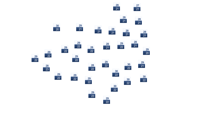 | 21 | 22 | 23 | 24 | 24 | 24 | 24 | 25 | 25 | 24 | 23 | 22 |