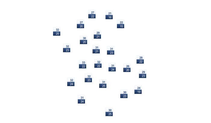 | 21 | 22 | 23 | 24 | 24 | 24 | 24 | 25 | 25 | 24 | 23 | 22 |