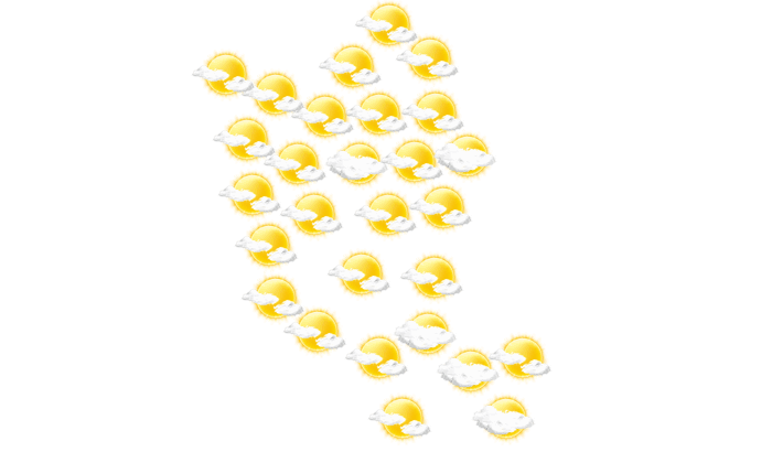 In Kratié zeigt sich morgens die Sonne zwischen einzelnen Wolken bei Temperaturen von 25°C. Darüber hinaus ist es am Nachmittag und am Abend bedeckt bei Temperaturen von 30 bis 40°C. Nachts ist es leicht bewölkt bei Werten von 25°C.