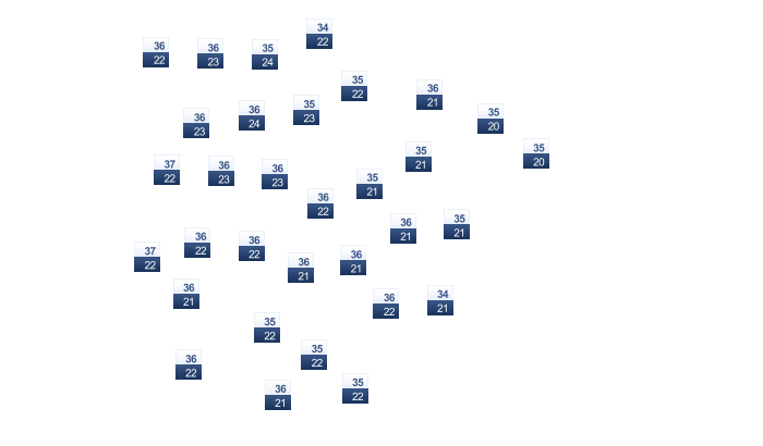| 21 | 22 | 23 | 24 | 24 | 24 | 24 | 25 | 25 | 24 | 23 | 22 |
