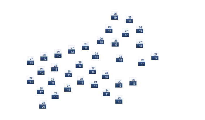 | 21 | 22 | 23 | 24 | 24 | 24 | 24 | 25 | 25 | 24 | 23 | 22 |