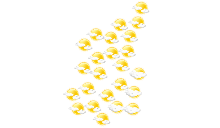 In Bar Kaev gibt es von Tagesbeginn bis zum Nachmittag überwiegend blauen Himmel mit vereinzelten Wolken bei Temperaturen von 18 bis 35°C. Am Abend ist es in Bar Kaev vielfach wolkig bei Werten von 23 bis zu 26°C. Nachts gibt es nur selten Lücken in der Wolkendecke bei Werten von 18°C.