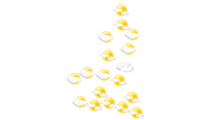 In Yaoundé kann es am Morgen zeitweise etwas Regen geben bei Temperaturen von 22°C. Des Weiteren ist es vom Nachmittag bis abends locker bewölkt bei Werten von 28 bis zu 32°C. Nachts bilden sich leichte Wolken bei Tiefstwerten von 22°C.