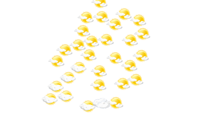 In Mbalmayo bleibt am Morgen die Wolkendecke geschlossen bei Werten von 22°C. Später gibt es nur selten Lücken in der Wolkendecke bei Höchsttemperaturen bis zu 33°C. Abends bilden sich in Mbalmayo leichte Wolken und die Temperaturen liegen zwischen 23 und 25 Grad. Nachts stören nur einzelne Wolken den sonst klaren Himmel und die Temperatur fällt auf 19°C.