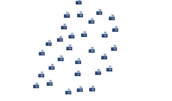 | 15 | 16 | 17 | 17 | 16 | 16 | 15 | 15 | 15 | 15 | 15 | 14 |