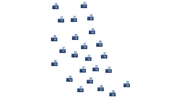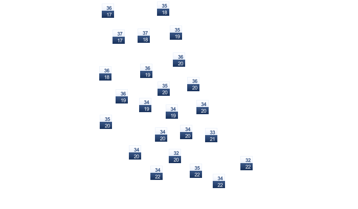 | 26 | 26 | 26 | 25 | 22 | 23 | 21 | 21 | 22 | 23 | 24 | 25 |