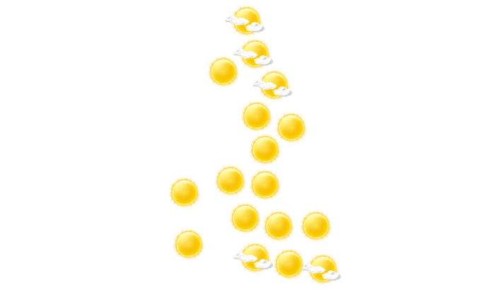 In Mora ist es tagsüber sonnig bei Werten von 22 bis zu 36°C. Nachts ist es wolkenlos bei Werten von 22°C.