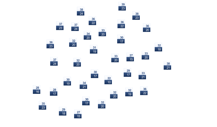 | 26 | 26 | 26 | 25 | 22 | 23 | 21 | 21 | 22 | 23 | 24 | 25 |