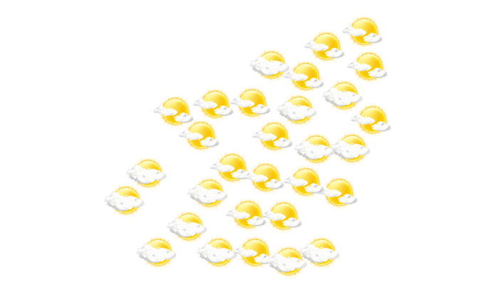 In Foumban bilden sich morgens leichte Wolken und die Temperatur liegt bei 18°C. Im weiteren Tagesverlauf ist es von mittags bis zum Abend hin überwiegend dicht bewölkt bei Werten von 22 bis zu 33°C. In der Nacht bilden sich vereinzelt Wolken bei einer Temperatur von 18°C.