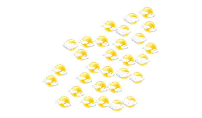 In Bafoussam ist es am Morgen wolkig bei Werten von 17°C. Im weiteren Tagesverlauf zeigt sich die Sonne zwischen einzelnen Wolken und die Höchstwerte liegen bei 31°C. Abends gibt es in Bafoussam nur selten Lücken in der Wolkendecke bei Temperaturen von 20 bis 24°C. Nachts stören nur einzelne Wolken den sonst klaren Himmel bei Tiefsttemperaturen von 16°C.