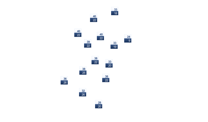 | 26 | 26 | 26 | 25 | 22 | 23 | 21 | 21 | 22 | 23 | 24 | 25 |