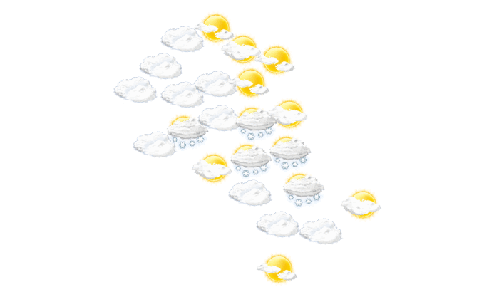 In Kitchener ist es tagsüber bedeckt bei Temperaturen von -3 bis 7°C. Nachts bilden sich vereinzelt Wolken bei Werten von 3°C. Mit Geschwindigkeiten von 4 bis 18 km/h weht der Wind aus südöstlicher bis südwestlicher Richtung. Böen können Geschwindigkeiten zwischen 27 und 79 km/h erreichen.