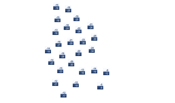 | -36 | -37 | -37 | -29 | -15 | -3 | 1 | -2 | -13 | -23 | -30 | -34 |