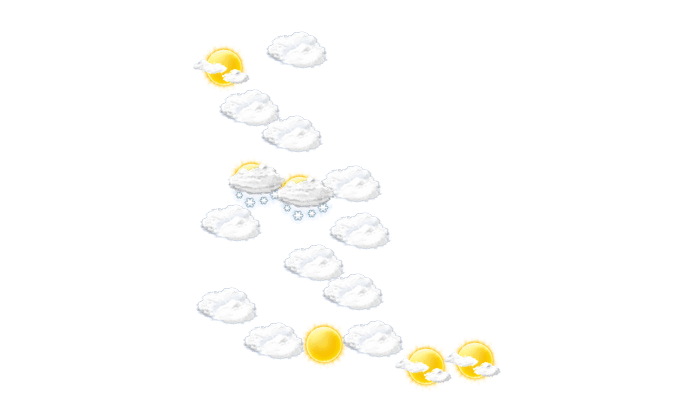 In Whitehorse gibt es tagsüber keine Wolken, die Sonne scheint bei Werten von -3 bis zu 1°C. In der Nacht ist es locker bewölkt bei Tiefstwerten von -4°C.