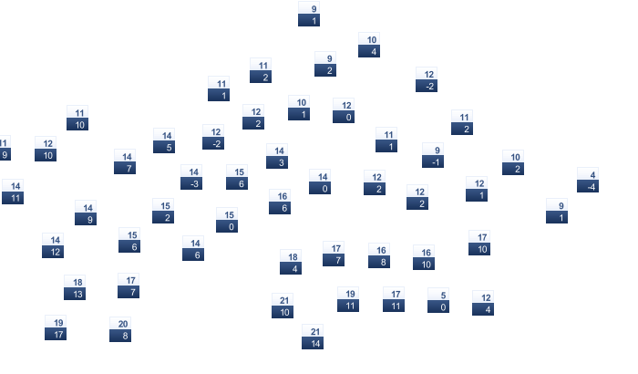 | -1 | 0 | 6 | 17 | 21 | 26 | 29 | 28 | 23 | 15 | 6 | 1 |