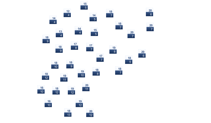 | -1 | 0 | 6 | 17 | 21 | 26 | 29 | 28 | 23 | 15 | 6 | 1 |