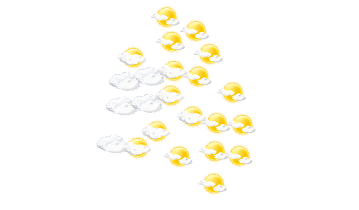 In Ust-Kamenogorsk wird am Morgen die Sonne von einzelnen Wolken verdeckt bei Werten von -10°C. Darüber hinaus ist es von mittags bis zum Abend hin überwiegend dicht bewölkt bei Temperaturen von -8 bis 0°C. Nachts gibt es nur selten Lücken in der Wolkendecke bei Werten von -8°C.