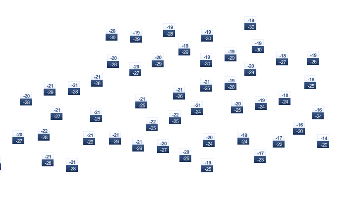 | -9 | -8 | -2 | 6 | 11 | 16 | 19 | 17 | 12 | 4 | -2 | -6 |