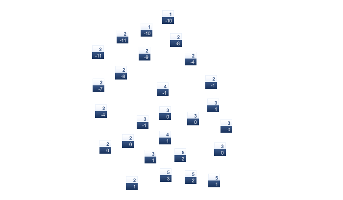| -1 | 0 | 6 | 17 | 21 | 26 | 29 | 28 | 23 | 15 | 6 | 1 |