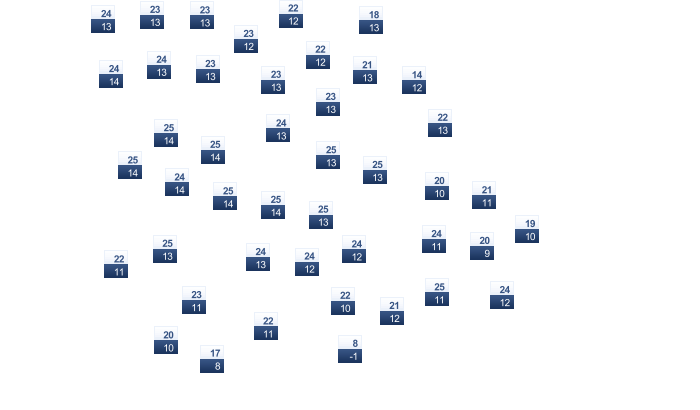 | -1 | 0 | 6 | 17 | 21 | 26 | 29 | 28 | 23 | 15 | 6 | 1 |