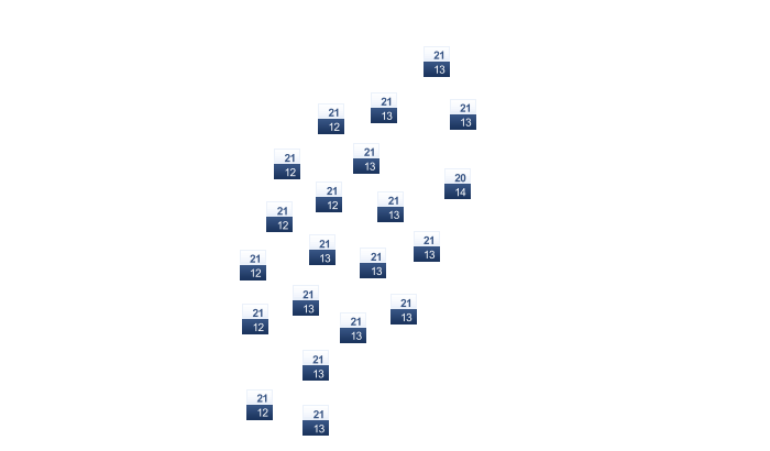 | 13 | 14 | 17 | 21 | 25 | 28 | 29 | 29 | 27 | 23 | 20 | 15 |