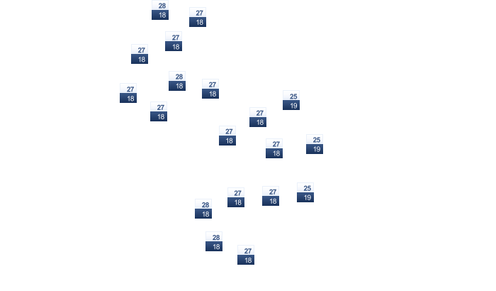 | 13 | 14 | 17 | 21 | 25 | 28 | 29 | 29 | 27 | 23 | 20 | 15 |