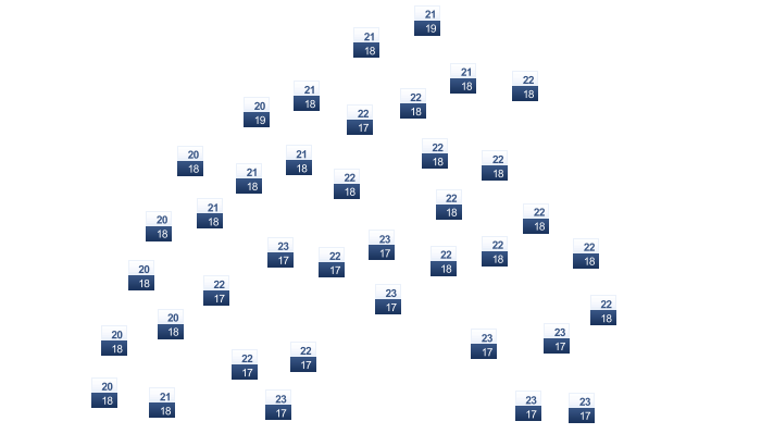 | 22 | 23 | 27 | 32 | 38 | 41 | 42 | 41 | 39 | 35 | 30 | 24 |