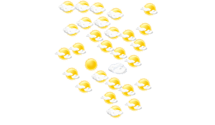 In Sagana stören den ganzen Tag nur einzelne Wolken den sonst blauen Himmel bei Werten von 15 bis zu 28°C. In der Nacht gibt es nur selten Lücken in der Wolkendecke bei Tiefsttemperaturen von 15°C.
