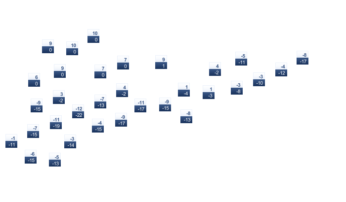 | -8 | -7 | -2 | 6 | 11 | 15 | 18 | 16 | 11 | 4 | -1 | -6 |