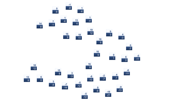 | -8 | -7 | -2 | 6 | 11 | 15 | 18 | 16 | 11 | 4 | -1 | -6 |