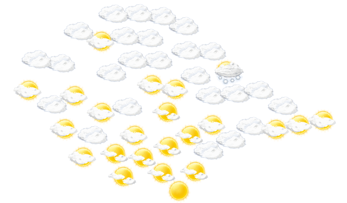 In Baetovo überwiegt den ganzen Tag dichte Bewölkung aber es bleibt trocken und die Temperaturen liegen zwischen 1 und 7°C. In der Nacht ist es leicht bewölkt bei Tiefstwerten von -1°C.