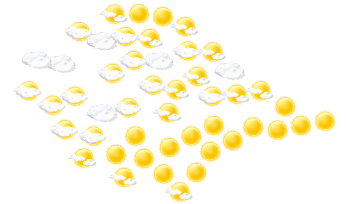 In At-Bashi sind von Tagesbeginn bis zum Nachmittag Teile des Himmels mit Wolken bedeckt, die Sonne ist aber zwischendurch sichtbar bei Werten von -15 bis zu -5°C. Am Abend bilden sich in At-Bashi leichte Wolken und die Temperaturen liegen zwischen -11 und -9 Grad. In der Nacht gibt es einen wolkenlosen Himmel bei Tiefsttemperaturen von -12°C.
