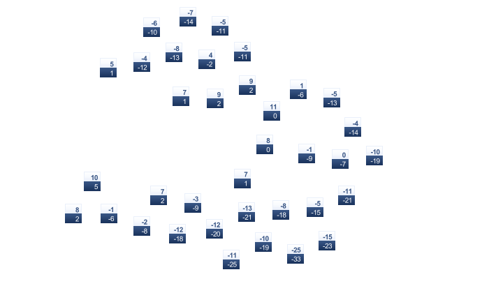 | -8 | -7 | -2 | 6 | 11 | 15 | 18 | 16 | 11 | 4 | -1 | -6 |
