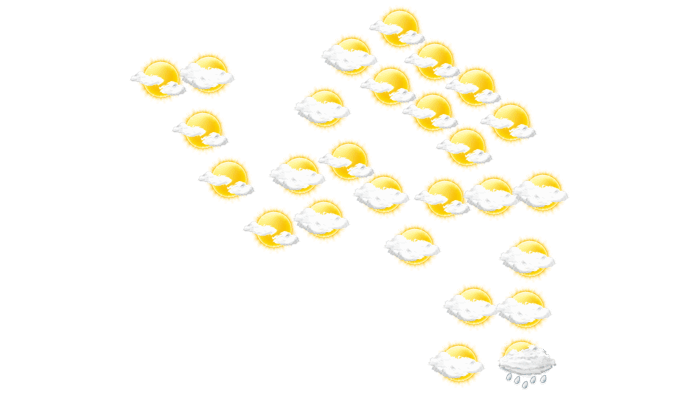 In Puerto Nariño gibt es am Morgen mehr Wolken als Sonne bei Werten von 24°C. Im weiteren Tagesverlauf sollte der Schirm nicht vergessen werden, da es regnet und die Höchstwerte liegen bei 34°C. Am Abend ziehen in Puerto Nariño Wolkenfelder durch bei Temperaturen von 24 bis 25°C. In der Nacht sind Teile des Himmels mit Wolken bedeckt und das Thermometer fällt auf 22°C.