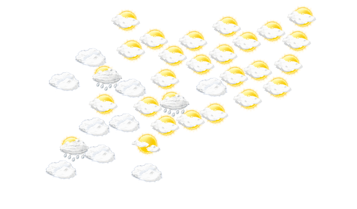 In La Dorada überwiegt am Morgen dichte Bewölkung aber es bleibt trocken bei Werten von 23°C. Im Laufe des Mittags verdecken einzelne Wolken die Sonne und die Temperatur steigt auf 31°C. Am Abend ziehen in La Dorada Wolkenfelder durch bei Werten von 25 bis zu 26°C. In der Nacht ist der Himmel bedeckt bei Werten von 24°C.