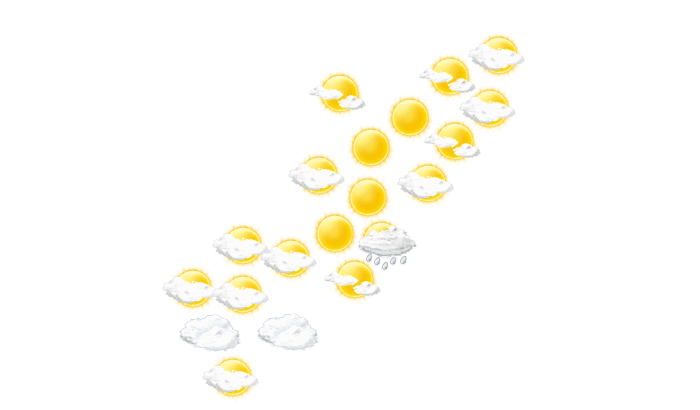 In Rivera ist es am Morgen bedeckt und die Temperatur liegt bei 21°C. Gegen später sind anhaltende Schauer zu erwarten und die Temperatur erreicht 27°C. Am Abend gibt es in Rivera keine Wolken und die Temperaturen liegen zwischen 22 und 23 Grad. Nachts bilden sich vereinzelt Wolken und die Temperatur sinkt auf 20°C.