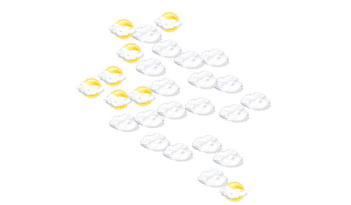 In Tumaco kommt es tagsüber zu einem Mix aus Sonne und Wolken bei Werten von 24 bis zu 30°C. Nachts ist es überwiegend dicht bewölkt bei Werten von 25°C.