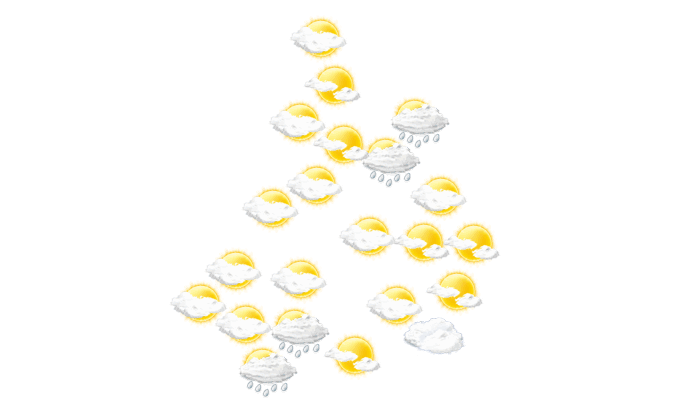 In Floridablanca sind morgens Teile des Himmels mit Wolken bedeckt, die Sonne ist aber zwischendurch sichtbar bei Temperaturen von 21°C. Darüber hinaus gibt es am Nachmittag und am Abend Regen bei Werten von 22 bis zu 26°C. In der Nacht gibt es Regen bei Tiefsttemperaturen von 21°C.