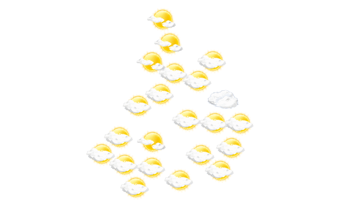 In Floridablanca kann sich tagsüber die Sonne nicht durchsetzen und es ist wolkig bei Temperaturen von 20 bis 26°C. In der Nacht gibt es nur selten Lücken in der Wolkendecke bei Tiefsttemperaturen von 20°C.
