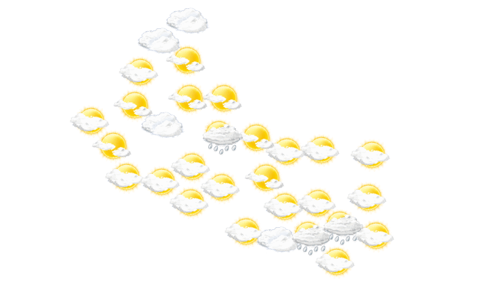 In Florencia ist es regnerisch und die Temperatur liegt bei 22°C. Im weiteren Verlauf des Tages zeigt sich von mittags bis zum Abend hin die Sonne nur vereinzelt bei sonst wolkigem Himmel und die Temperaturen liegen zwischen 22 und 28 Grad. Nachts gibt es Regen bei Tiefstwerten von 22°C.
