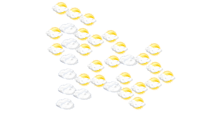 In Ebili ist es am Tag überwiegend dicht bewölkt bei Werten von 21 bis zu 27°C. Nachts ziehen Wolkenfelder durch bei Werten von 22°C.