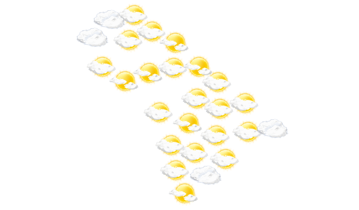 In Diosso überwiegt morgens dichte Bewölkung aber es bleibt trocken bei Temperaturen von 25°C. Am Mittag ist es leicht bewölkt und das Thermometer klettert auf 30°C. Am Abend ist es in Diosso wolkenlos und die Temperaturen liegen zwischen 25 und 26 Grad. In der Nacht bilden sich vereinzelt Wolken und die Luft kühlt sich auf 24°C ab.